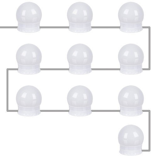 - SPECYFIKACJA: wygodny panel sterowania: tak, na przewodzie; możliwość przyklejenia do lustra: tak; barwa światła: ciepła, neutralna, zimna; materiał: PC, pozostałe: ABS + PVC + zestaw naklejek samoprzylepnych; odcienie światła: 3; poziomy intensywności: 11; łączna ilość trybów: 30; zasilanie USB; moc: 6W; napięcie: 5V; długość całkowita przewodu: 4,5 m (w tym przewód z lampkami 2,7m); regulowana długość przewodu pomiędzy lampkami: do 25cm; wymiary żarówki (szer/wys): 4,5 x 5 cm; waga: 0,15kg; waga w opakowaniu: 0,236kg.