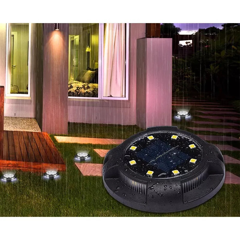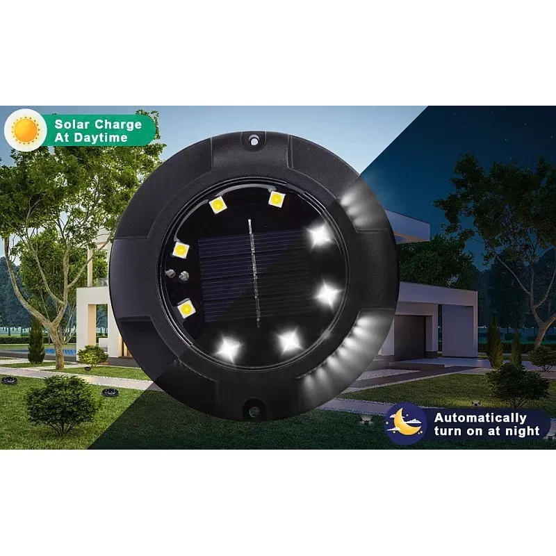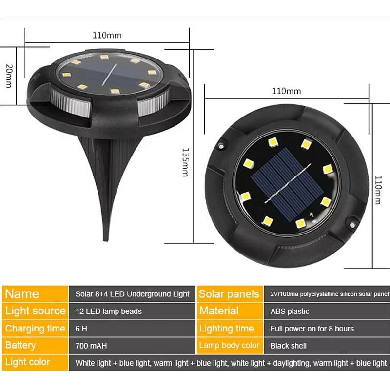 Solarna lampka ogrodowa wbijana lub do powieszenia na ścianie. LED w kolorze czarnym. Lampka posiada 8 diod do podświetlenia głównego i 4 do podświetlenia bocznego tworzącego ring, sprawdzi się jako dekoracyjne i praktyczne oświetlenie ogrodu.