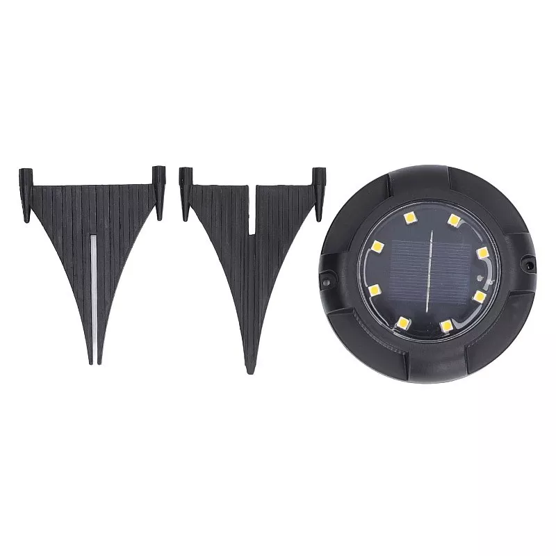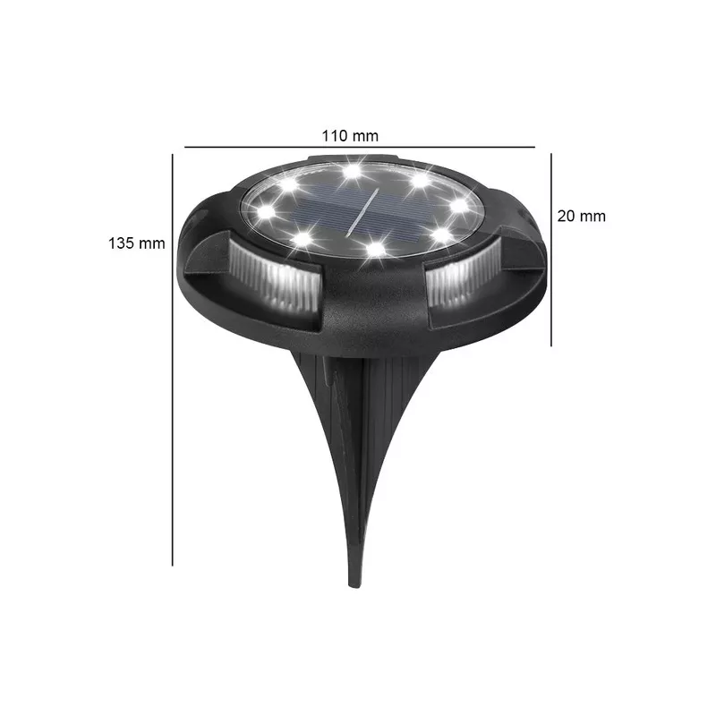 Solarna lampka ogrodowa wbijana lub do powieszenia na ścianie. LED w kolorze czarnym. Lampka posiada 8 diod do podświetlenia głównego i 4 do podświetlenia bocznego tworzącego ring, sprawdzi się jako dekoracyjne i praktyczne oświetlenie ogrodu.
