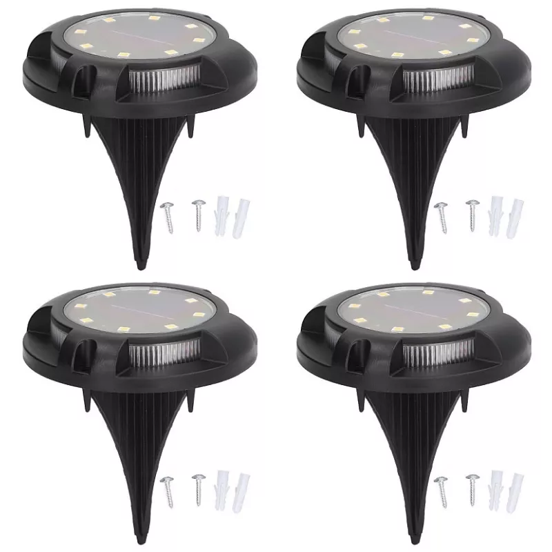 Lampki solarne wbijane gruntowe ogrodowe z ringiem 4 stuki fi10 zimne