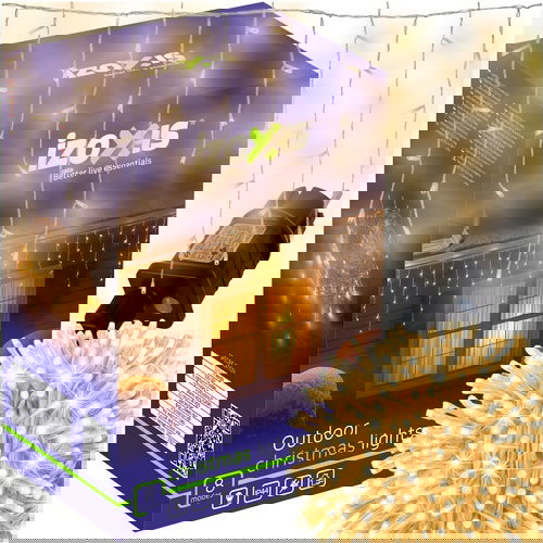 Lampki choinkowe 500 LED, sople ciepłe białe 22,5m IP44 IZOXIS flash, 8 trybów - przenieś swój dom w magiczny nastrój świąt!