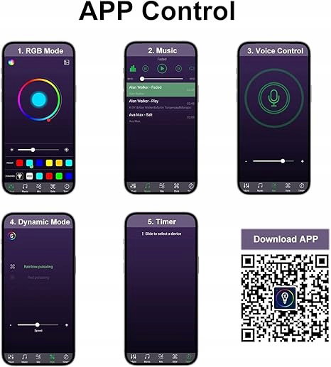 - Pilot zdalnego sterowania i App Control: LED ściemnialne światła ścienne mają elastyczność trzech metod sterowania: przycisk, pilot zdalnego sterowania i APP. Jeśli jeden z nich nie jest dostępny, pozostałe dwa zachowają funkcję światła, co przyniesie wygodę w Twoim życiu. Doskonałe dekoracyjne światła do atmosfery sypialni, dekoracji pokoju zabaw, dekoracji urodzin, dekoracji imprez i dekoracji świątecznych. Uwaga: Sterowanie aplikacją wymaga pobrania dedykowanej aplikacji i połączenia przez Bluetooth.