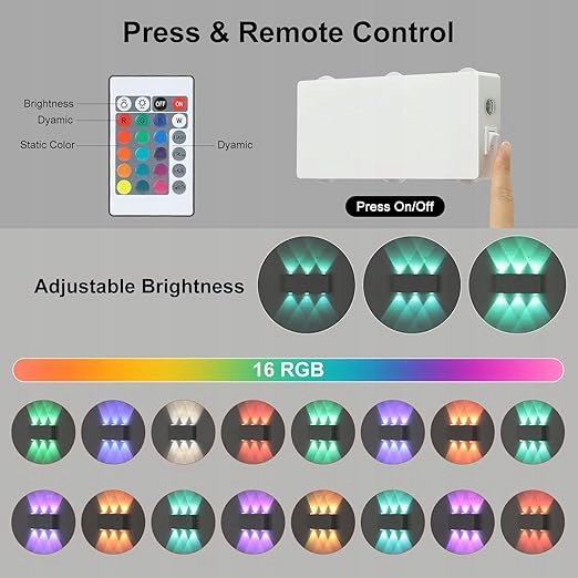 - Regulowane oświetlenie wielokolorowe: nasze oświetlenie ścienne zasilane bateryjnie jest dostępne w setkach kolorów do wyboru, w tym kojące ciepłe odcienie dla relaksu, kolory RGB na świąteczne okazje, takie jak Boże Narodzenie i Nowy Rok, oraz płynne efekty wielokolorowe. Możesz dostosować kolor i jasność świateł do swojego nastroju i sprawić, że bezprzewodowe oświetlenie ścienne będzie samodzielne.