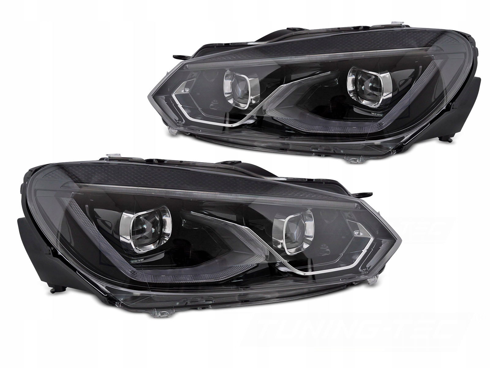Wybierz nowoczesne reflektory przednie dedykowane do VW Golf VI z lat 2008–2013, przeznaczonych do modeli bez fabrycznych reflektorów xenonowych. To doskonały zamiennik standardowych lamp halogenowych, który diametralnie odmieni wygląd Twojego auta i nada mu wyjątkowo nowoczesny, prestiżowy charakter.