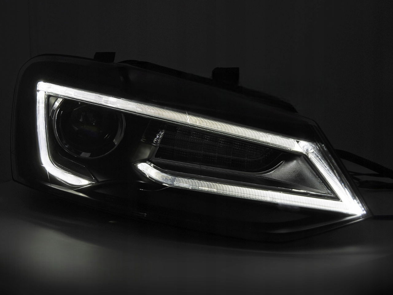 LAMPY PRZEDNIE REFLEKTORY DYNAMICZNE BLACK LED do VW POLO 6R V 5 09-17