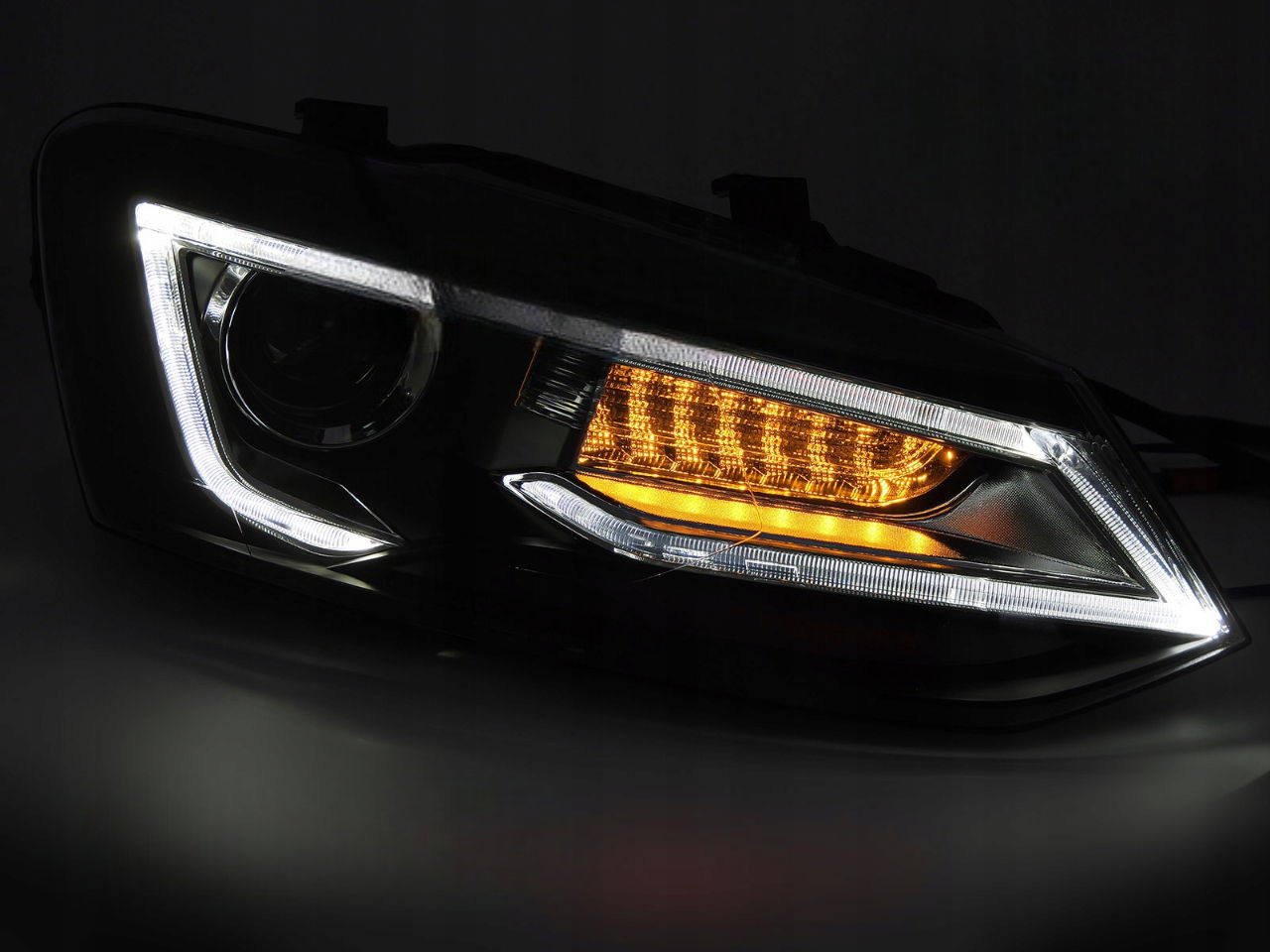 LAMPY PRZEDNIE REFLEKTORY DYNAMICZNE BLACK LED do VW POLO 6R V 5 09-17