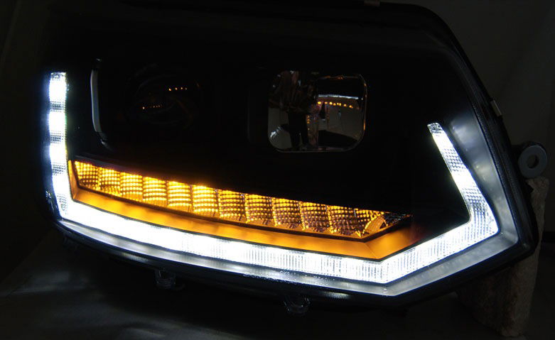 LAMPY PRZEDNIE REFLEKTORY DYNAMICZNE LED BLACK do VW T5 2010-2015