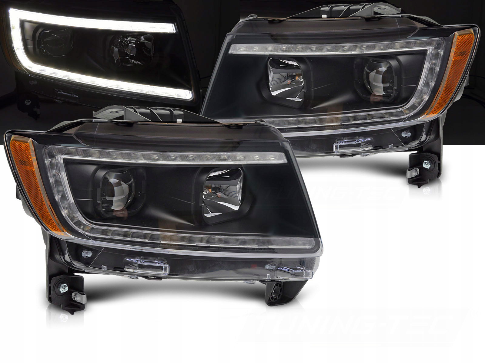 LAMPY PRZEDNIE REFLEKTORY LED TUBE BLACK JEEP GRAND CHEROKEE WK2 2011-2013