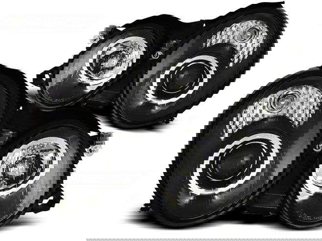 LAMPY PRZEDNIE REFLEKTORY RINGI LED BLACK do MERCEDES W208 CLK 97-02