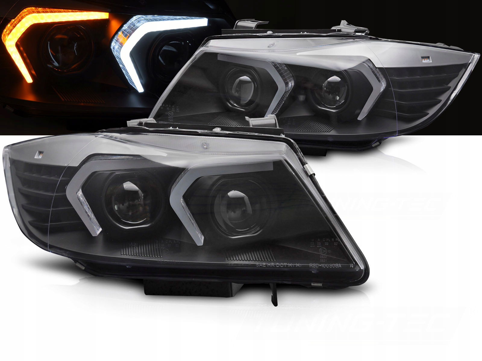 LAMPY PRZEDNIE REFLEKTORY XENON HID LED BLACK do BMW E90 E91 LCI 2009-2011