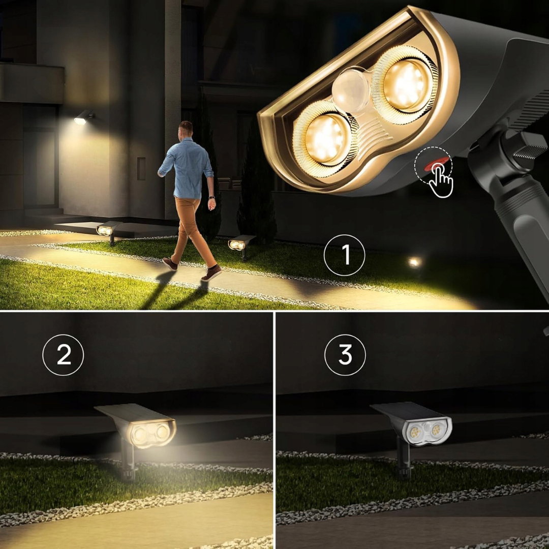Lampy solarne czujnik ruchu, 2 LED 650lm, ciepła biel 3000K, IP67 - 2szt