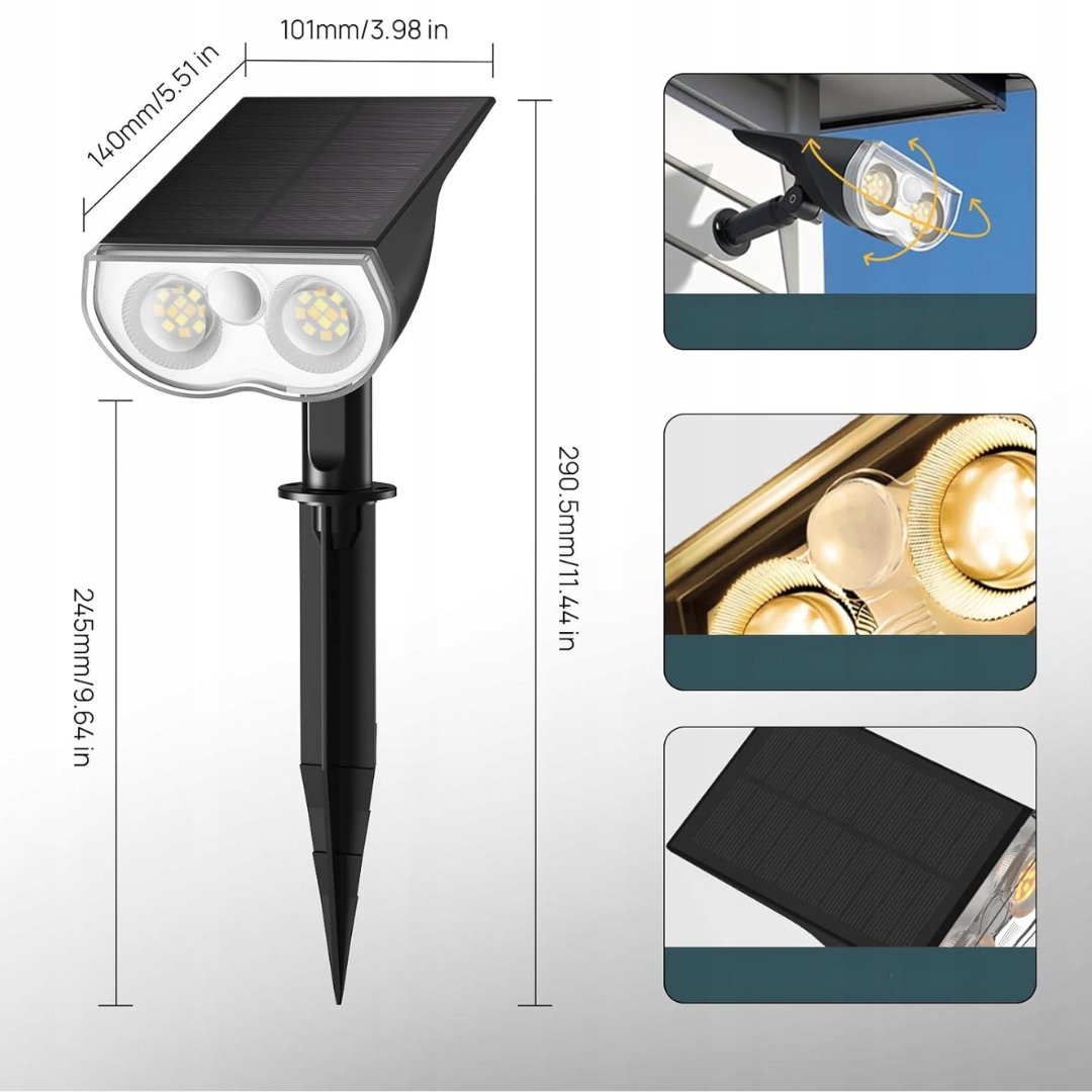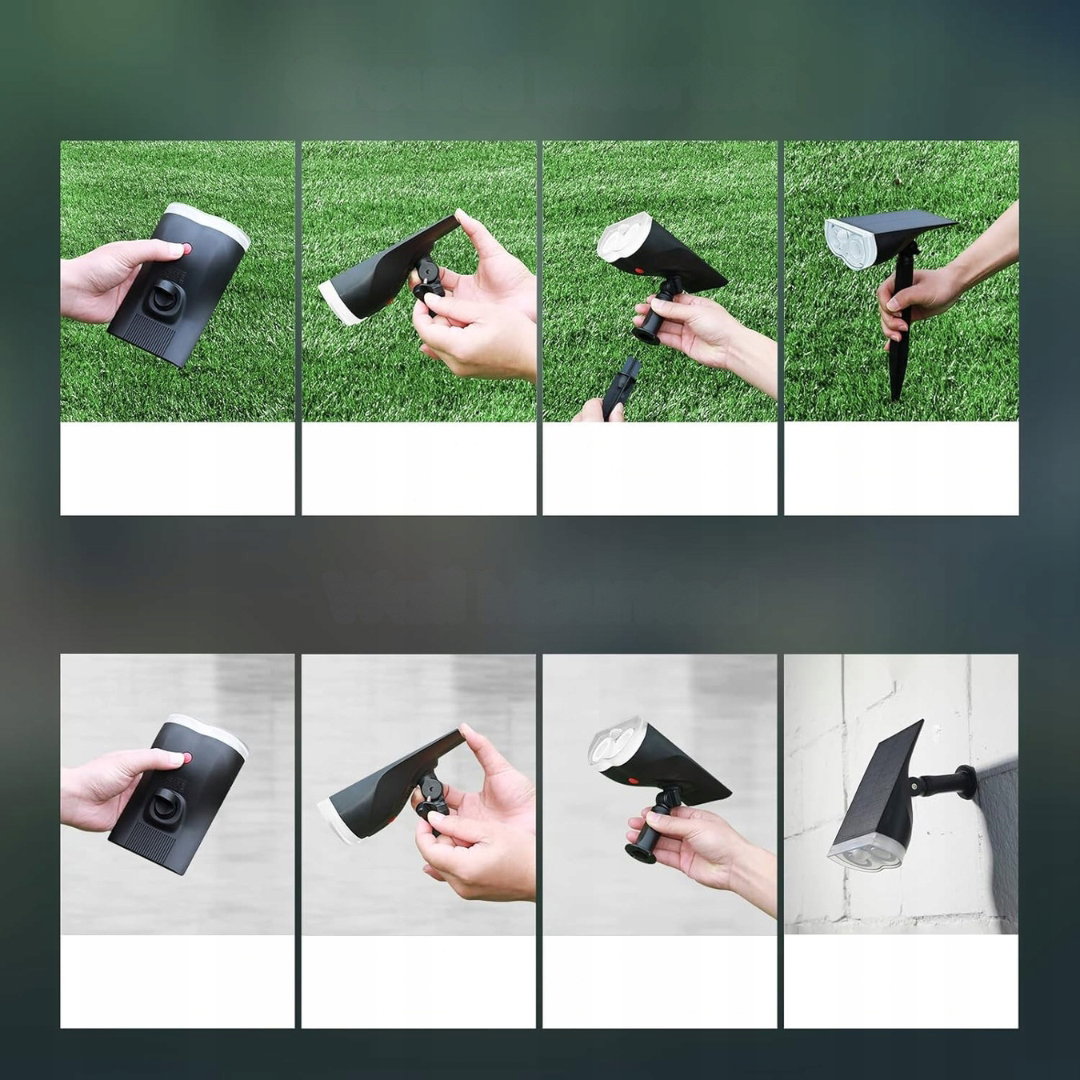 - Montaż 2 w 1 i wszechstronne zastosowanie: lampa umożliwia montaż na dwa sposoby i różnorodne zastosowanie. Może być wbijana w ziemię za pomocą dołączonego kołka jako oświetlenie ogrodu, ścieżki, basenu lub podwórka, albo montowana na ścianie za pomocą dołączonych śrub jako lampa ścienna lub zabezpieczająca. Pozycję światła można dowolnie regulować w zależności od potrzeb.
