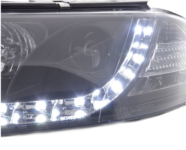 - reflektory soczewkowe posiadają wbudowane światło LEDy, które spełniają funkcję świateł do jazdy dziennej. Idealny zamiennik fabrycznych lamp.
