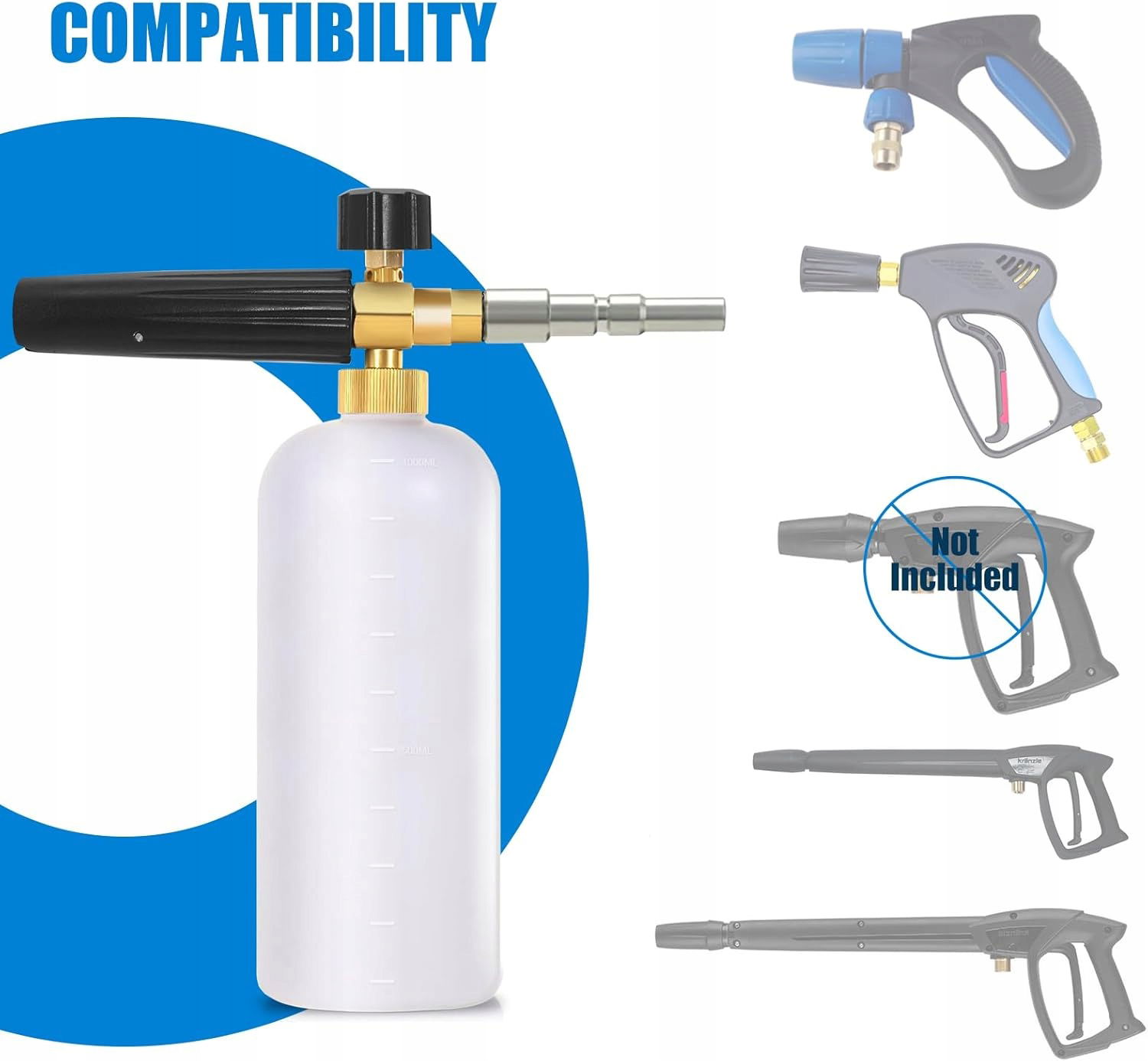 Stone Banks Piankowa lanca do pianki Nilfisk Alto/KEW/Kränzle/WAP Foam Cannon regulowana dysza rozpylacza mydła butelka z pianki 1 l, pistolet piankowy do myjki ciśnieniowej