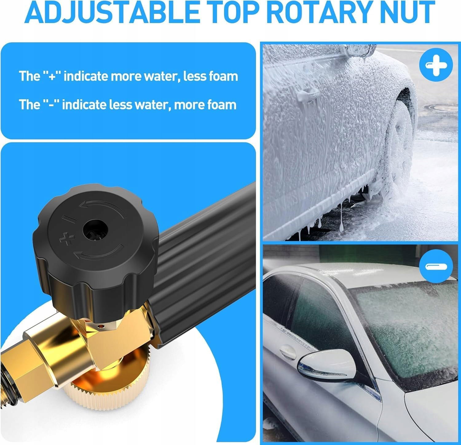 Każda armatura piankowa myjka ciśnieniowa jest wyposażona w regulowaną dyszę i trwałe złącze