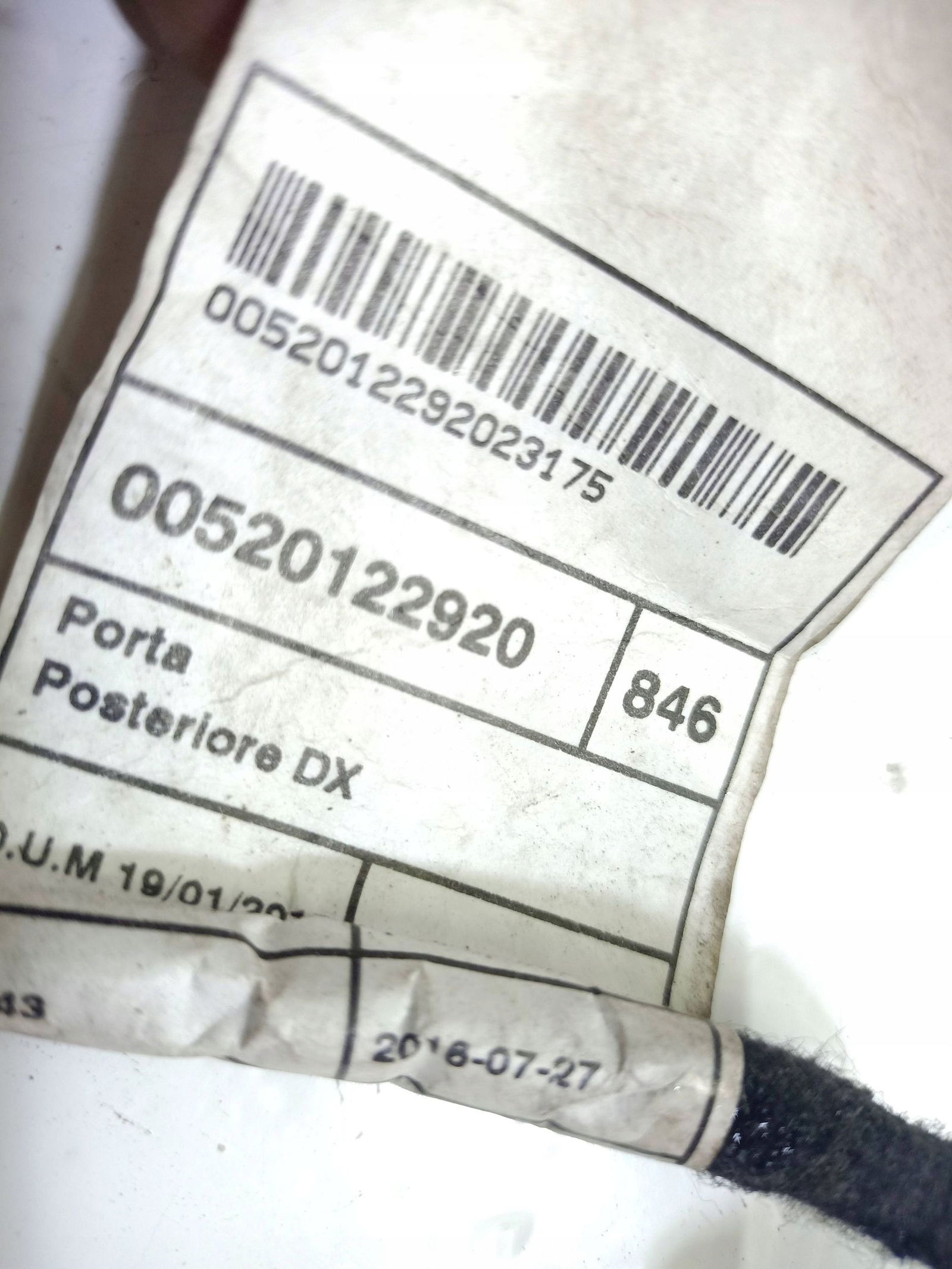 Lancia Ypsilon III 11-23 Wiązka przewodów drzwi tylnych prawych 00520122920