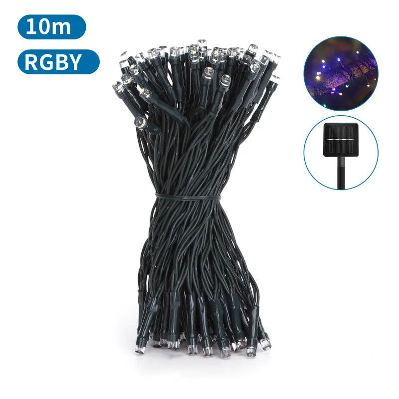 Łańcuch solarny girlanda LED 100 kolorowych lampek RGBY długość 10mb