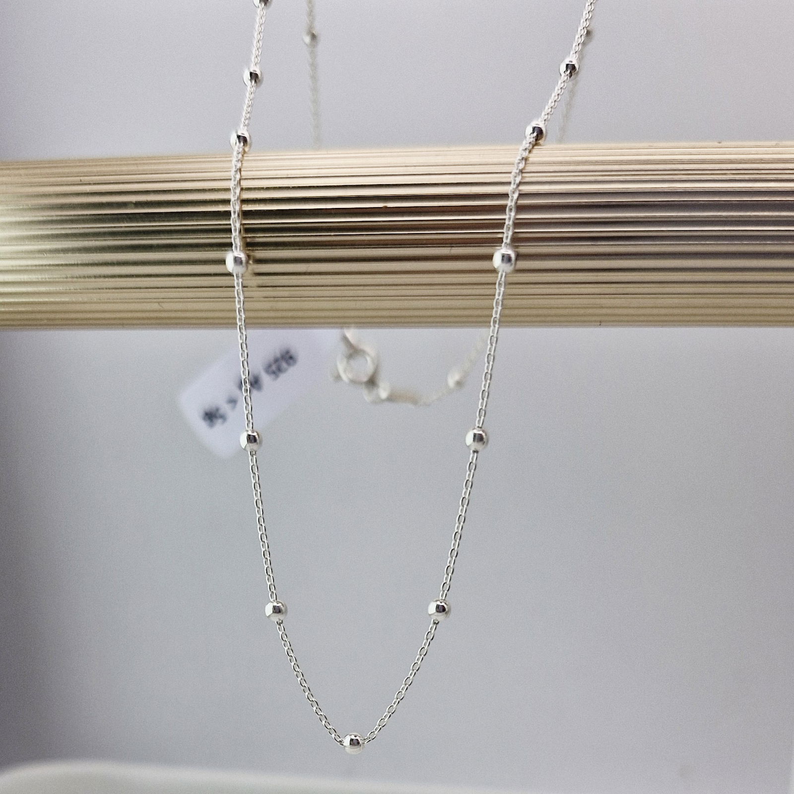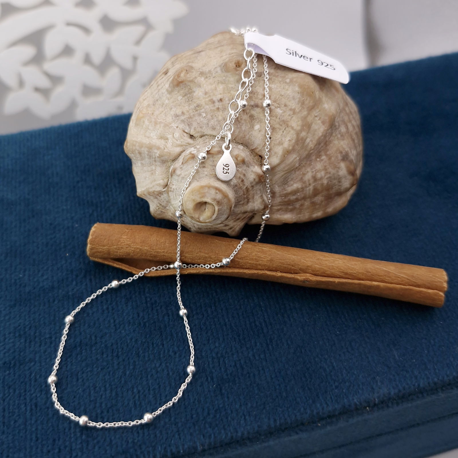 Oferujemy Państwu srebrny łańcuszek o pięknym splocie typu ankier z małymi kuleczkami .Łańcuszek wykonany jest w całości ze srebra próby 925.