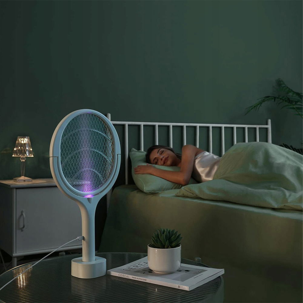 - Tryb stacjonarny – łapka stoi sama i działa jak mini-lampa owadobójcza.