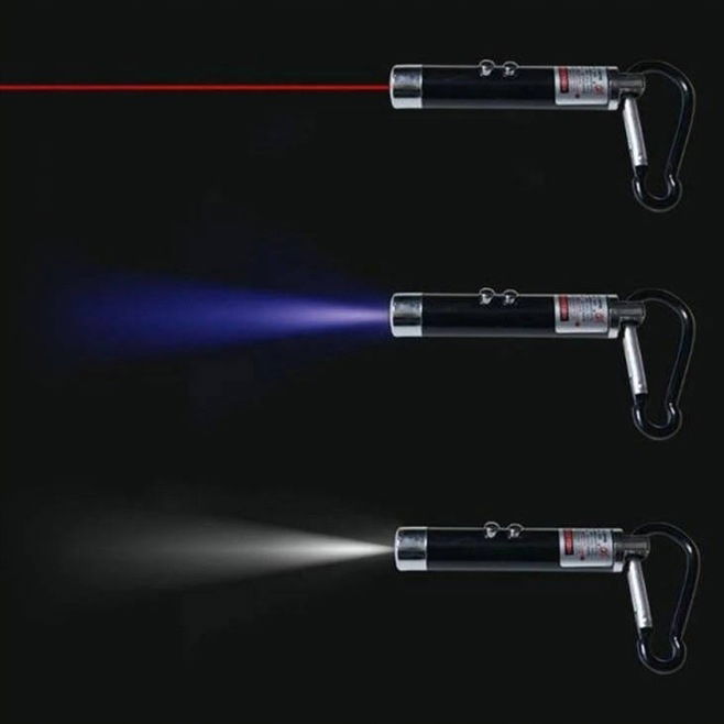 - Funkcje: laser, latarka, lampka UV