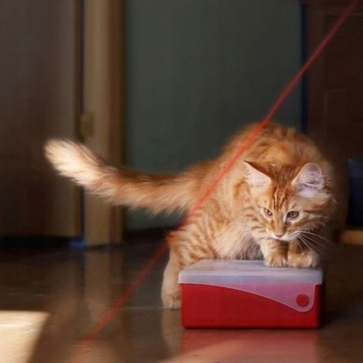 Jak dobrze wiemy, czerwona mała kropka wzbudza prawdziwe zainteresowanie u kotów, zatem zaczynają na nią polować.