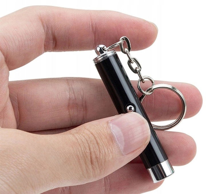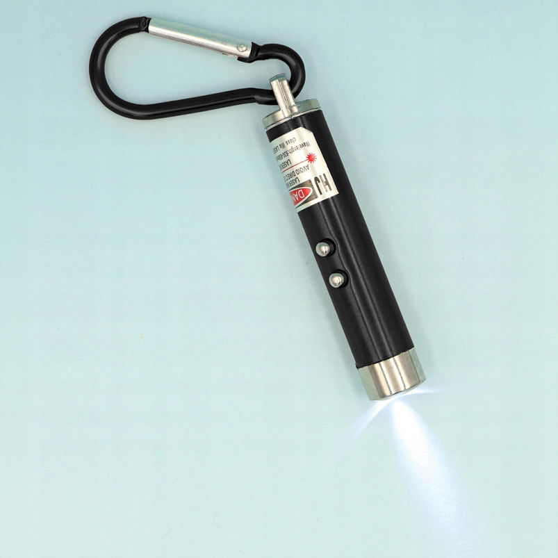 Z laserem dostaniesz również karabińczyk, który pozwoli przyczepić Ci laser na przykład do kluczy lub spodni.