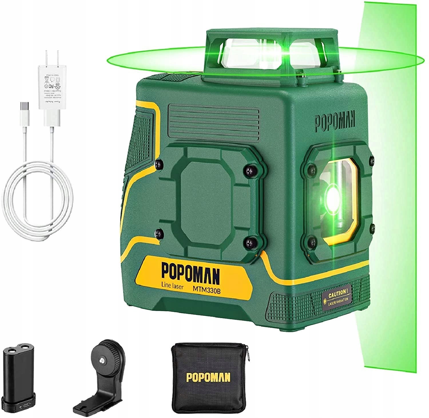 Laser krzyżowy POPOMAN MTM330B o zasięgu 30 m z laserem liniowym 360° IP54 i akumulatorem litowym 5200 mAh