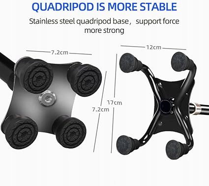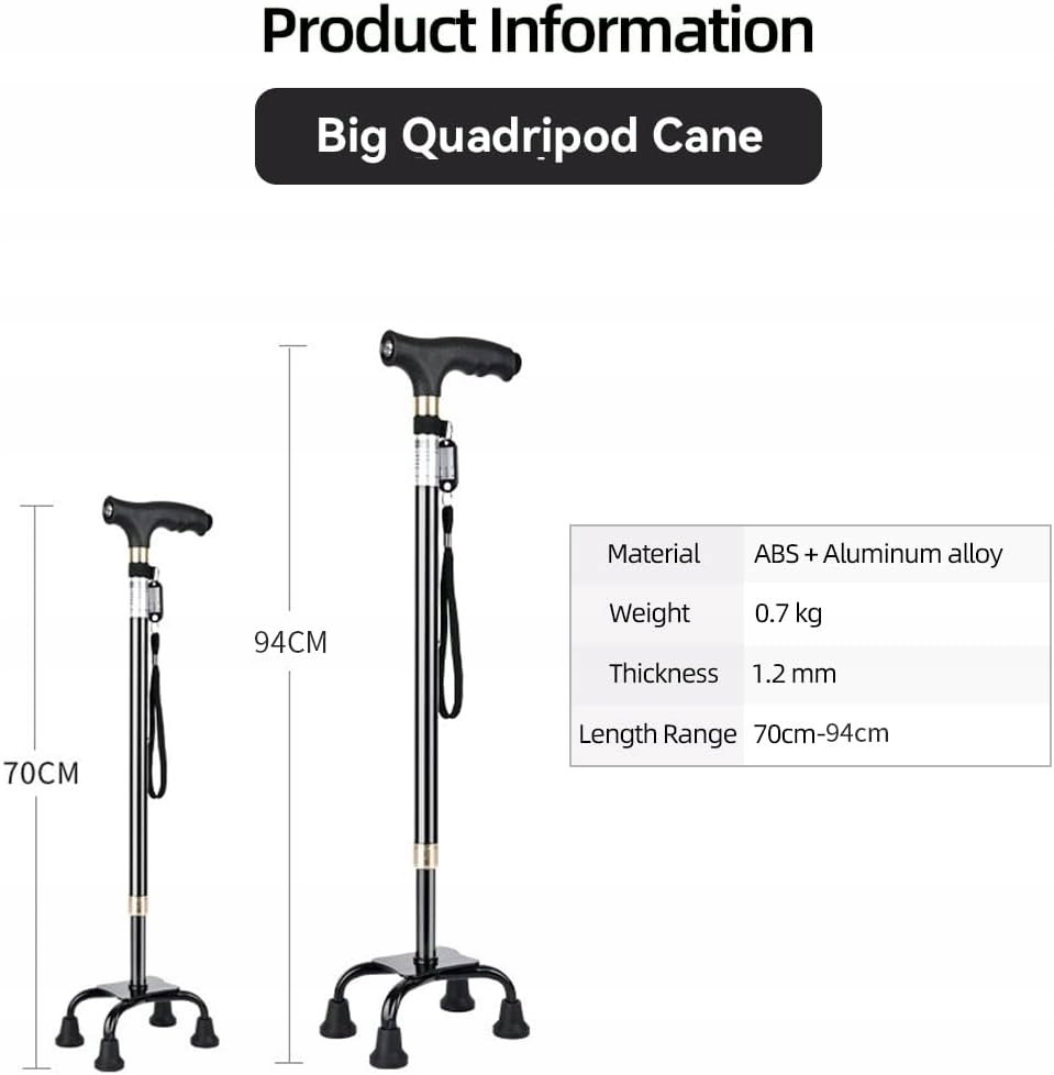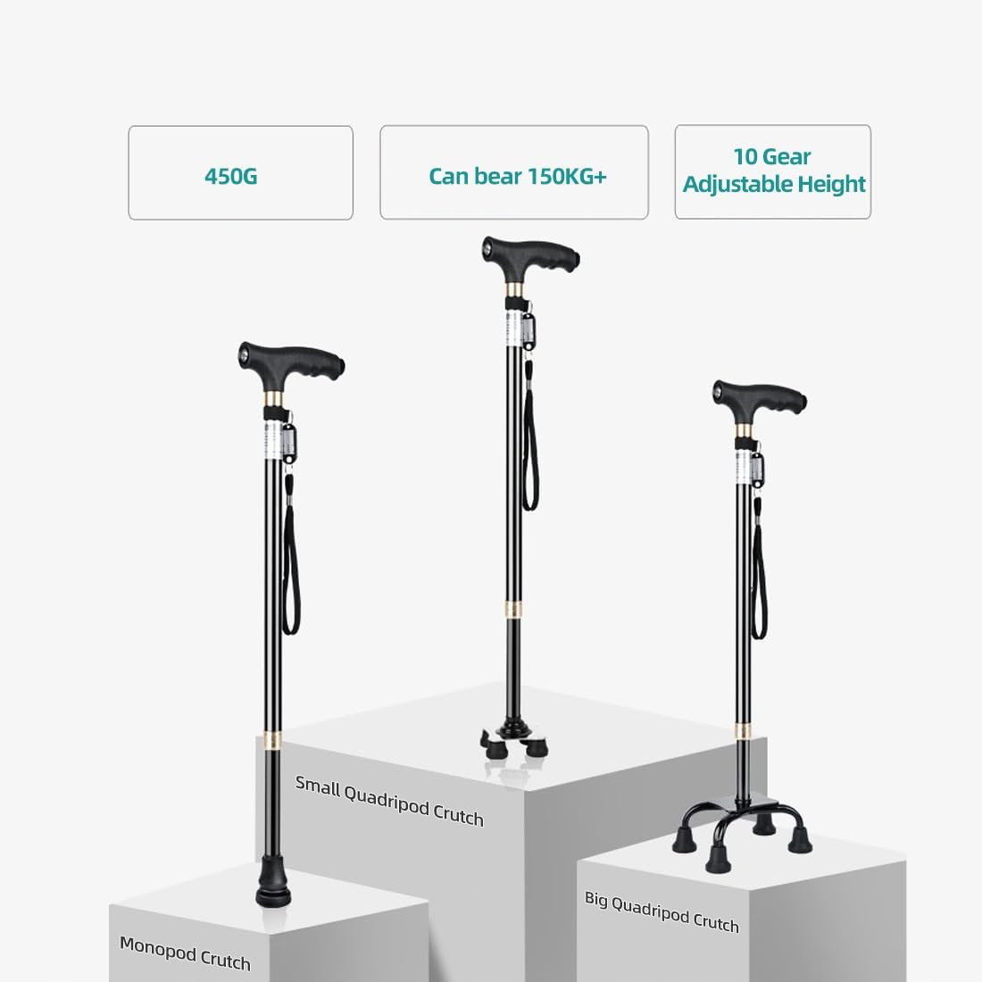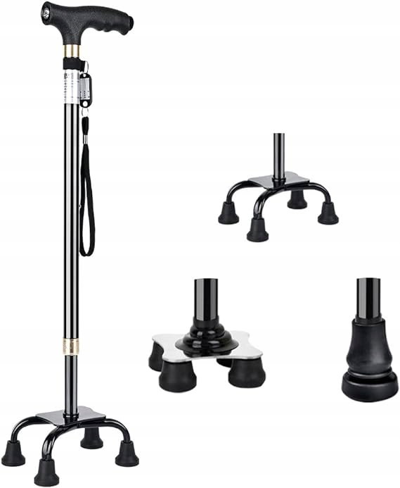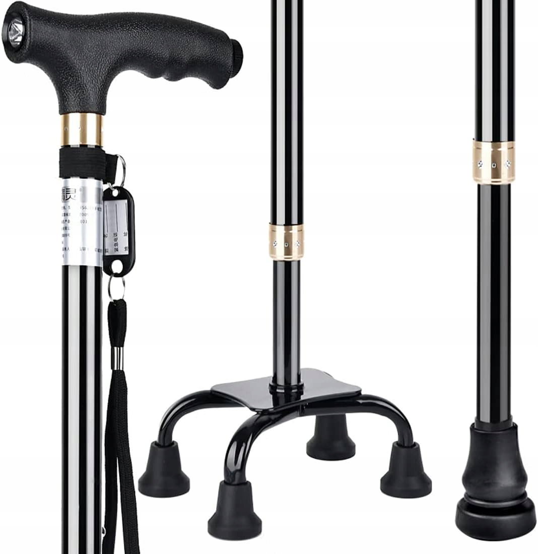 KCareU Laska dla mężczyzn, kobiet, osób starszych, antypoślizgowa, regulowana Laska dla osób starszych, ultralekka, 4-zębowa, z lampką