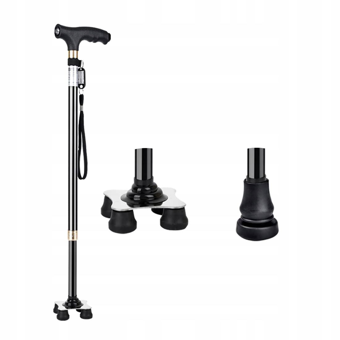 Podstawa quadripod ze stali nierdzewnej umożliwia stabilne oparcie i niezależne stanie. To doskonała pomoc dla osób starszych, ceniących wygodę i bezpieczeństwo.