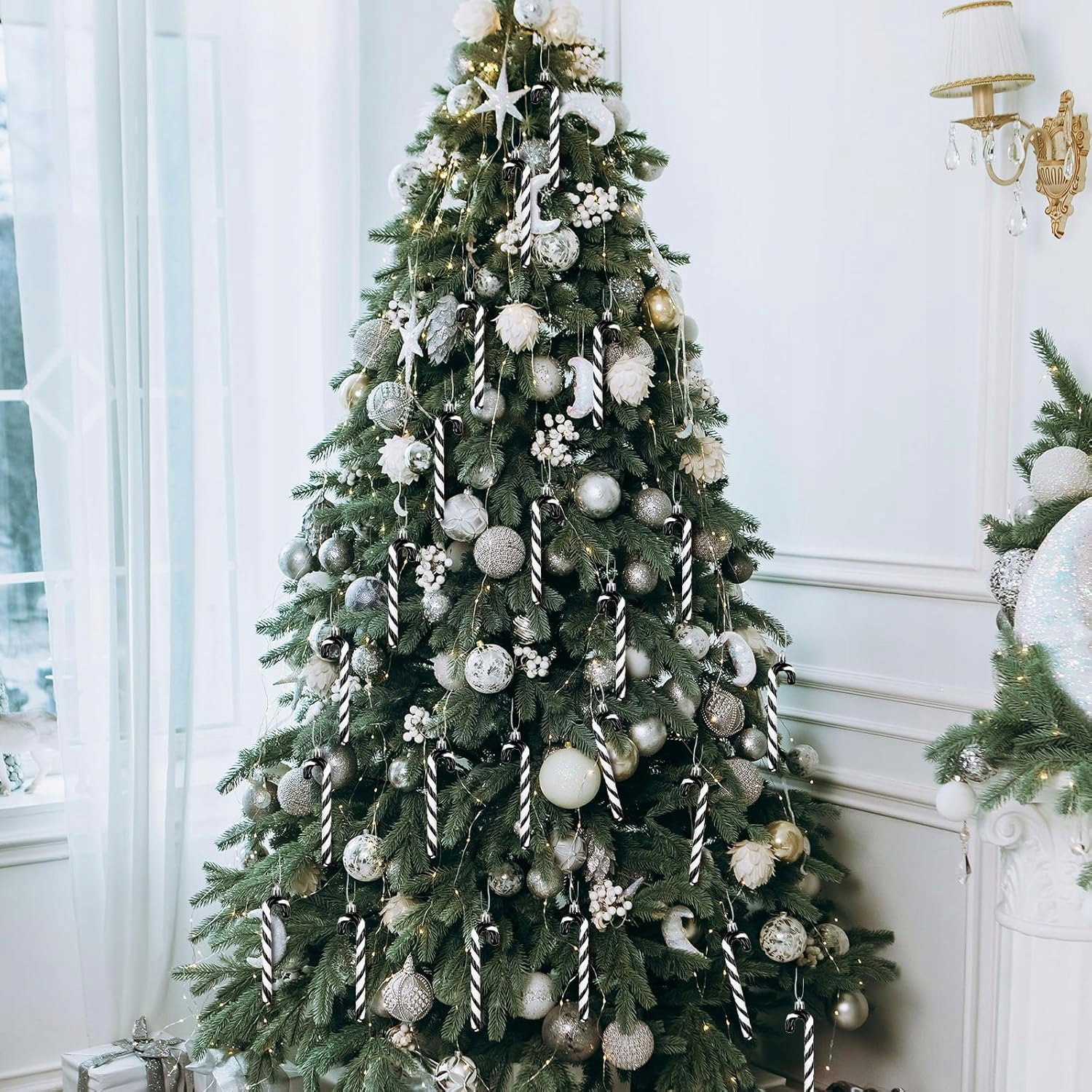 Dodaj świątecznego uroku swojej choince dzięki zestawowi klasycznych ozdób inspirowanych laskami cukrowymi.