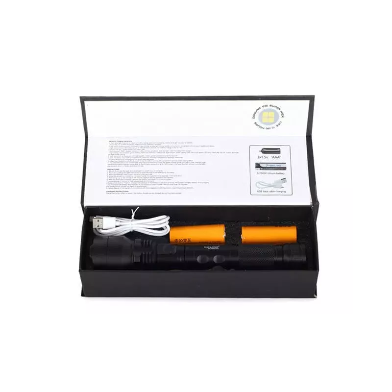 Do zasilania latarki został użyty wysokiej jakości litowo-jonowy akumulator/ogniwo 26650, który pozwala na długi czas pracy latarki.