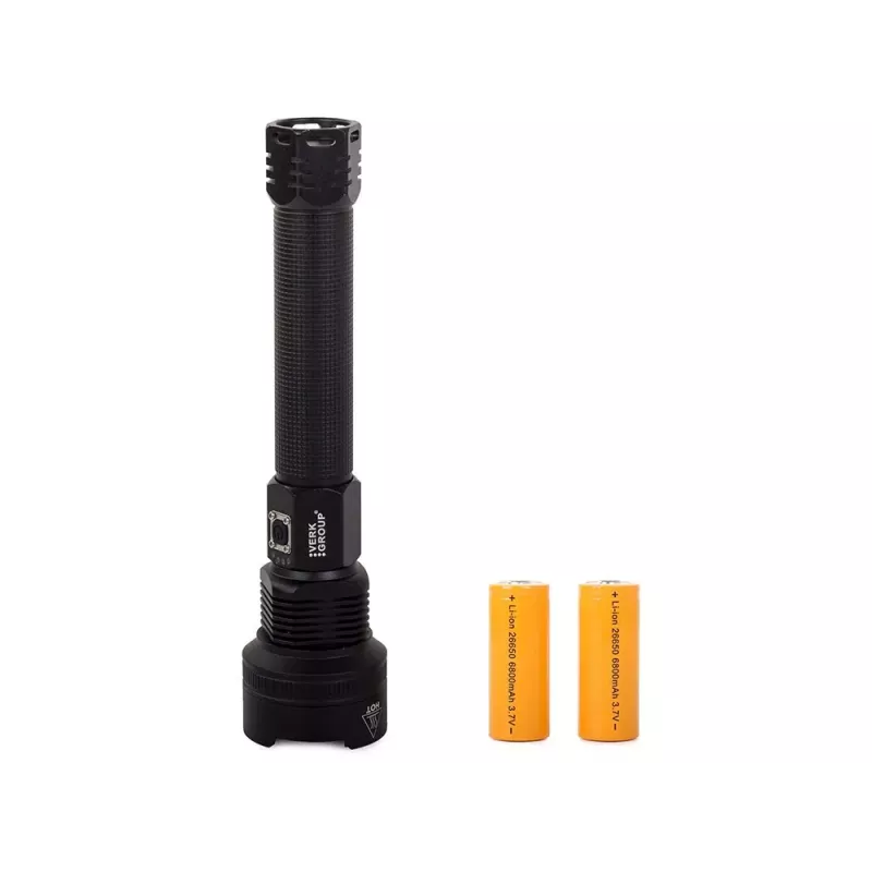 Do zasilania latarki został użyty wysokiej jakości litowo-jonowy akumulator/ogniwo 26650, który pozwala na długi czas pracy latarki.