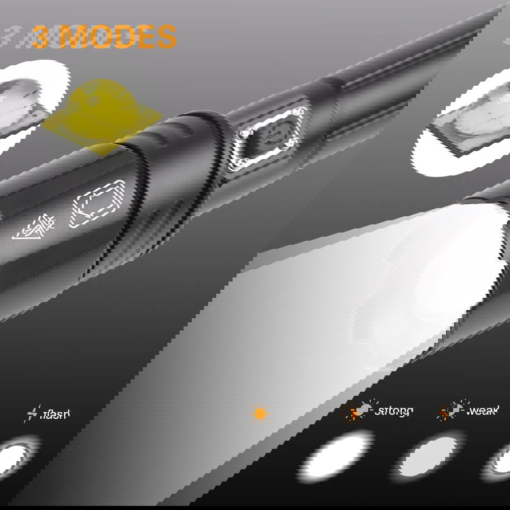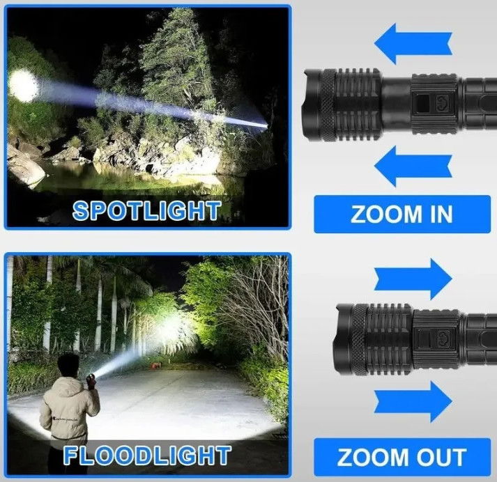 - Latarka wyposażona w nowoczesną diodę LED P360, dzięki czemu dioda daje bardzo mocne światło