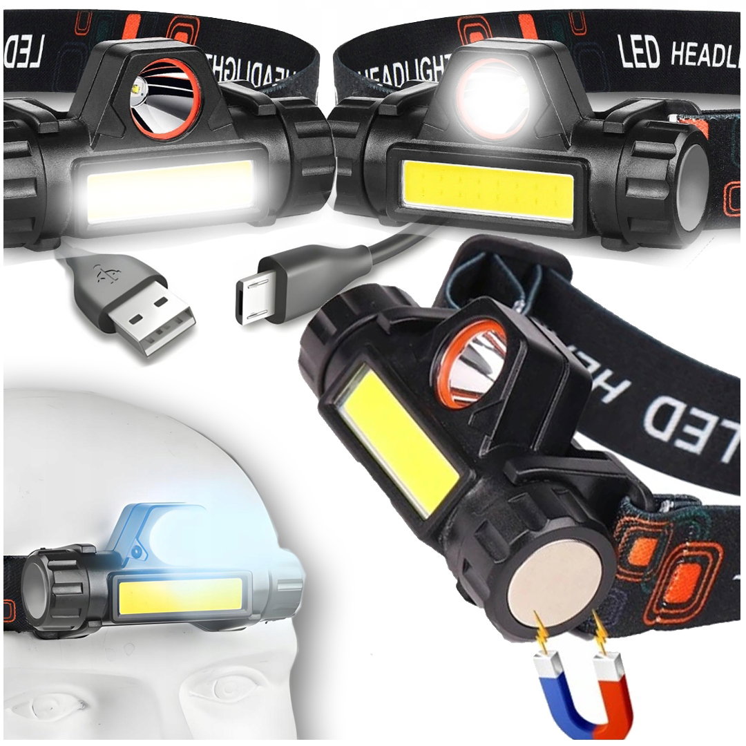 LATARKA CZOŁOWA LAMPKA CZOŁÓWKA COB LED ŁADOWANA Z USB 3 w 1 UCHYT MAGNES
