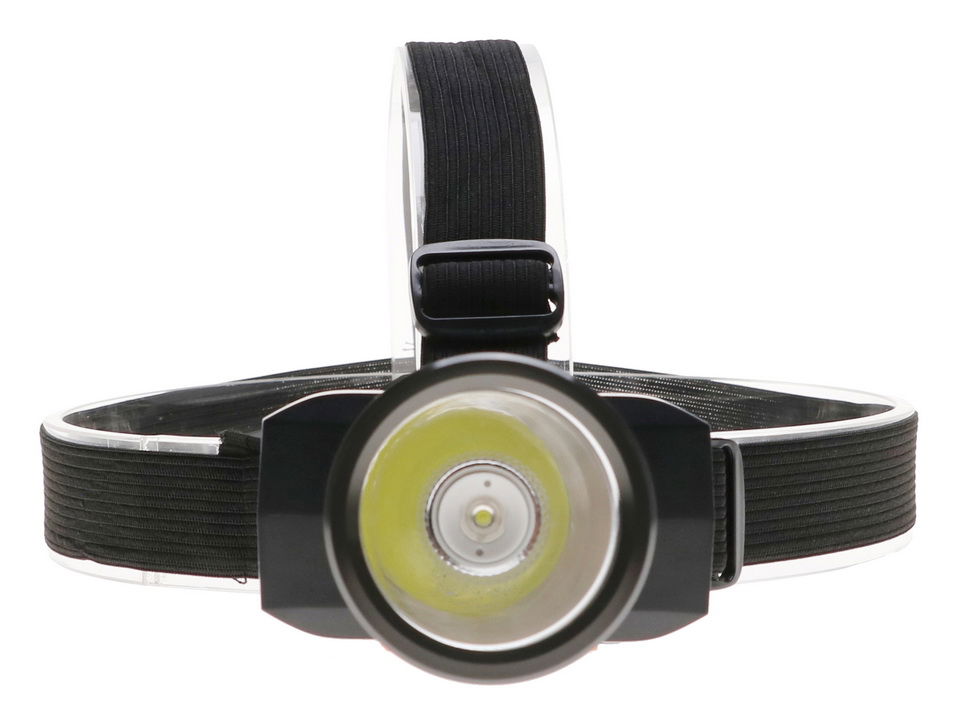 Regulowana latarka czołowa z wydajną diodą LED zapewnia jasny i długi snop światła skutecznie oświetlający wszystkie ciemności.