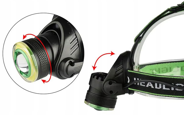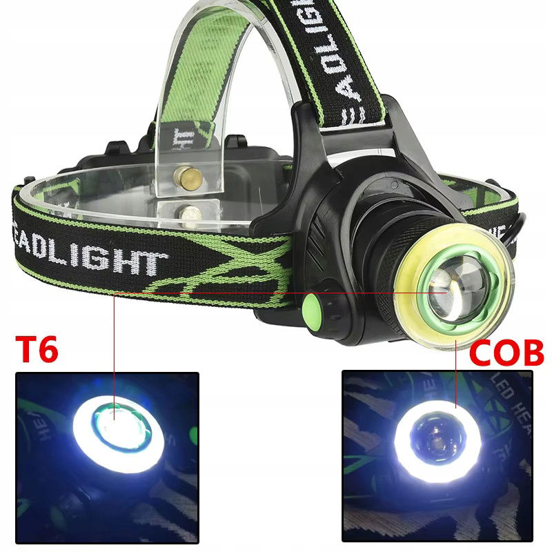 Regulowana latarka czołowa z wydajną diodą T6 LED zapewnia jasny i długi snop światła skutecznie oświetlający wszystkie ciemności. Dodatkowo wokół diody COB świecące obszarowo