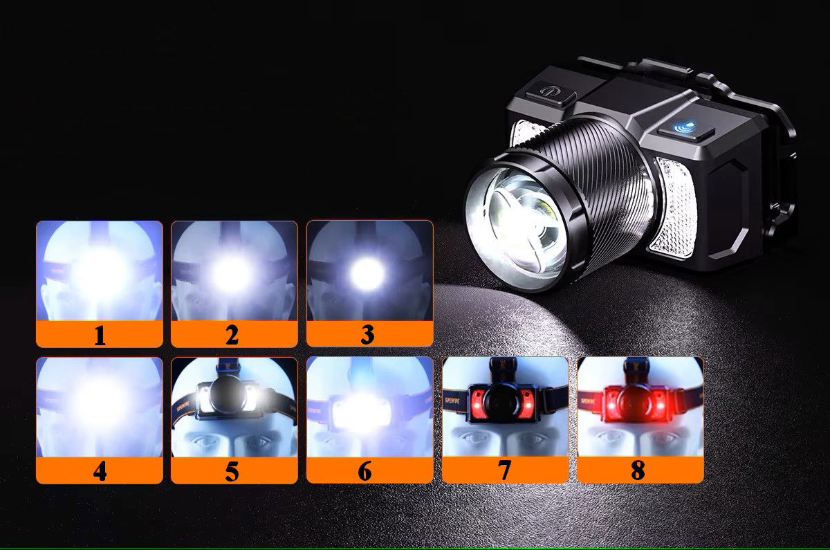 Mocna latarka czołowa czołówka z 8 trybami świecenia, zasięgiem aż 210 metrów