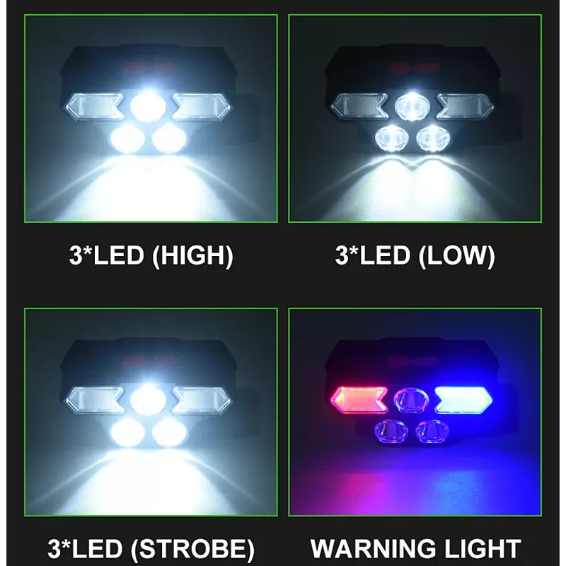 cztery regulowanego trybu oświetlenia, 4 tryby (wysokie-niskie-stroboskopowe, czerwone i niebieskie światła ostrzegawcze).