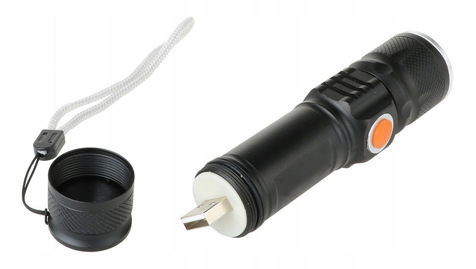 Latarka posiada 3 tryby świecenia: 100% mocy, 50% mocy, tryb migający