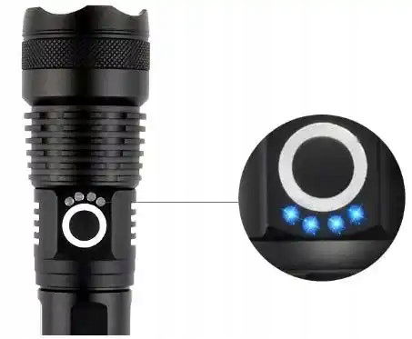 Latarka posiada regulację zoom. Dzięki niej można świecić oświecić bardzo duży obszar lub skupić wiązkę w jednym punkcie.