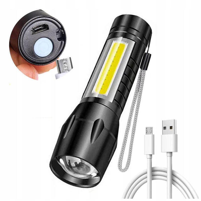 LATARKA LED ŁADOWANA Z USB AKUMULATOROWA COB ALUMINIOWA OBUDOWA ZOOM