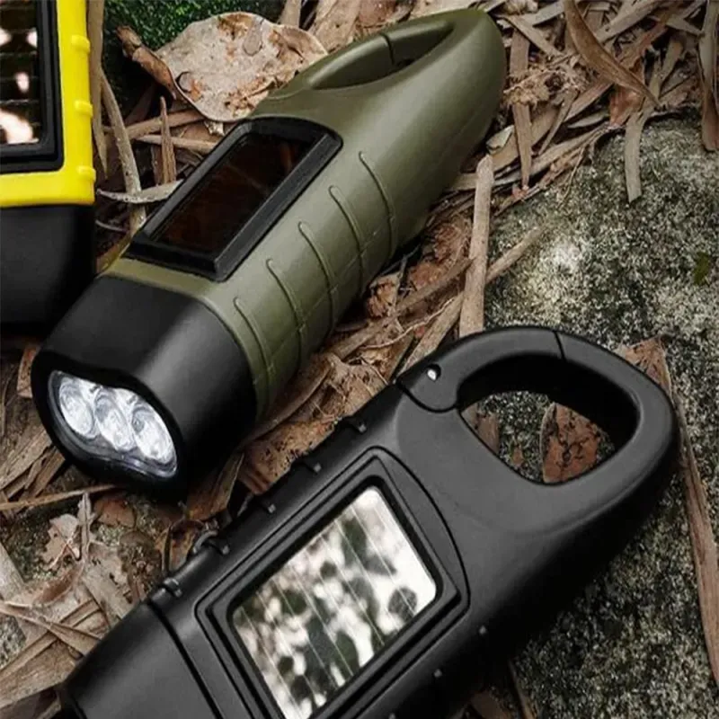 Latarka na dynamo solarna 3 led ręczna nakręcana na korbkę z klipsem