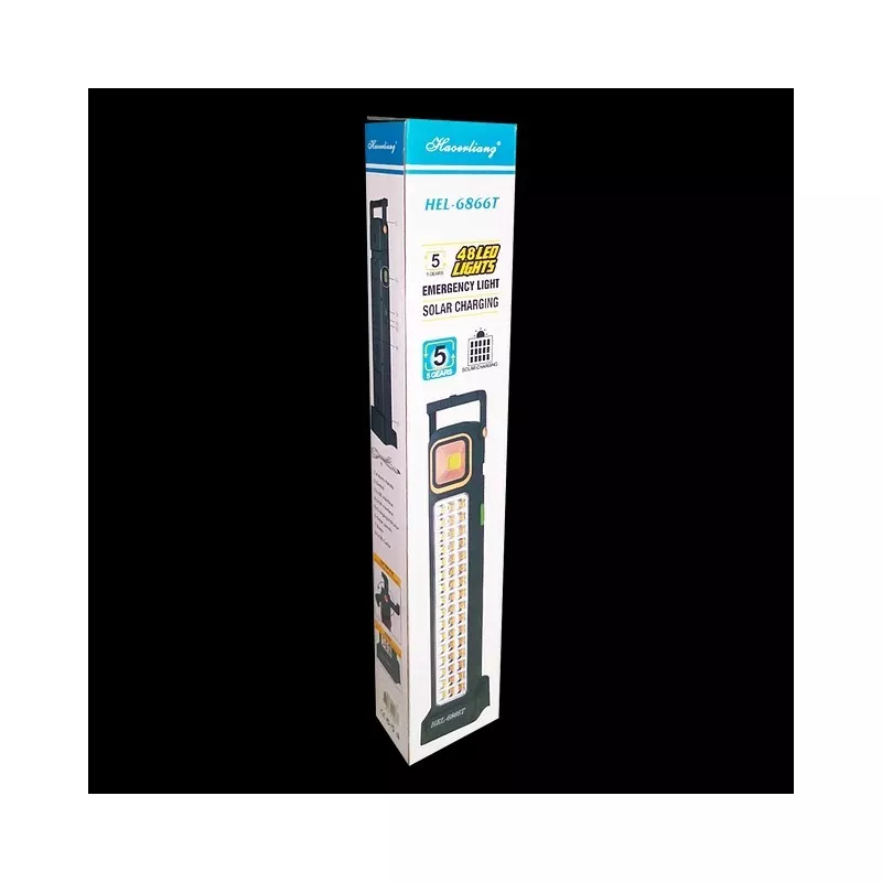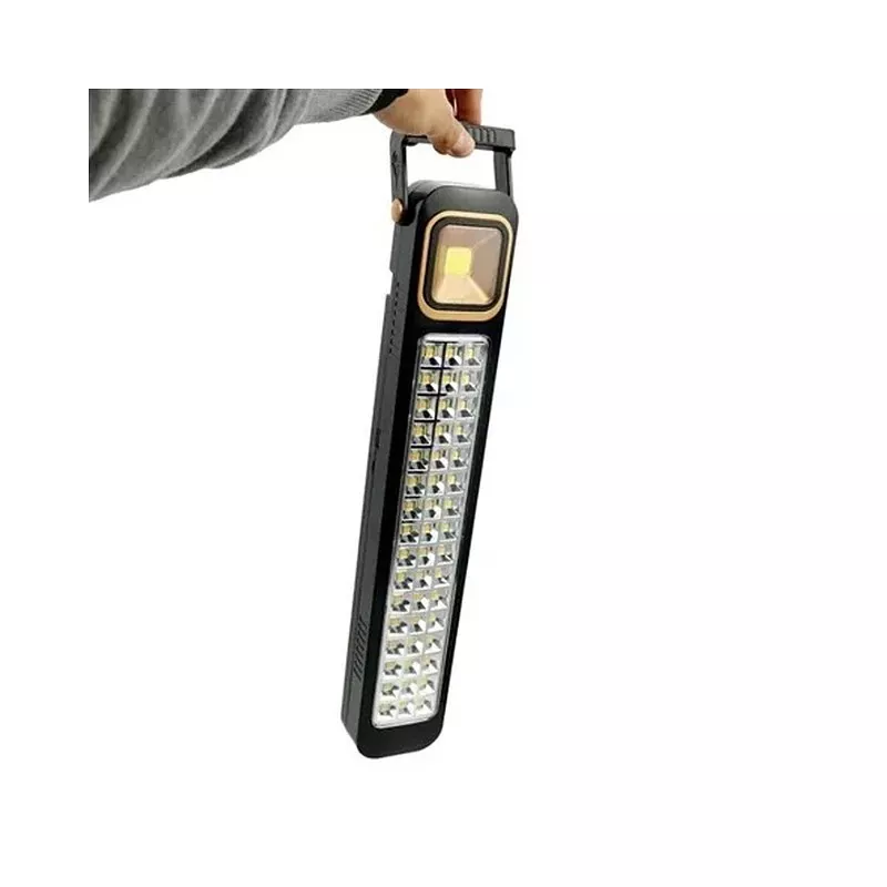 Wielofunkcyjna dwustronna przenośna lampa latarka kempingowa robocza, ładowana słonecznie lub z ładowarki. Można ją wykorzystać jako ładowarkę do telefonu lub innego urządzenia. Jest idealna do biwakowania, wędkowania. Dwie barwy światła białe ciepłe i/lub białe zimne. Lampka jest lekka a jej wymiary to tylko 41*7*5 cm, waga 400g.