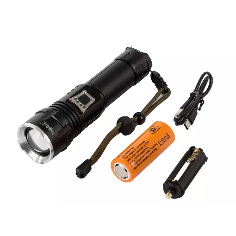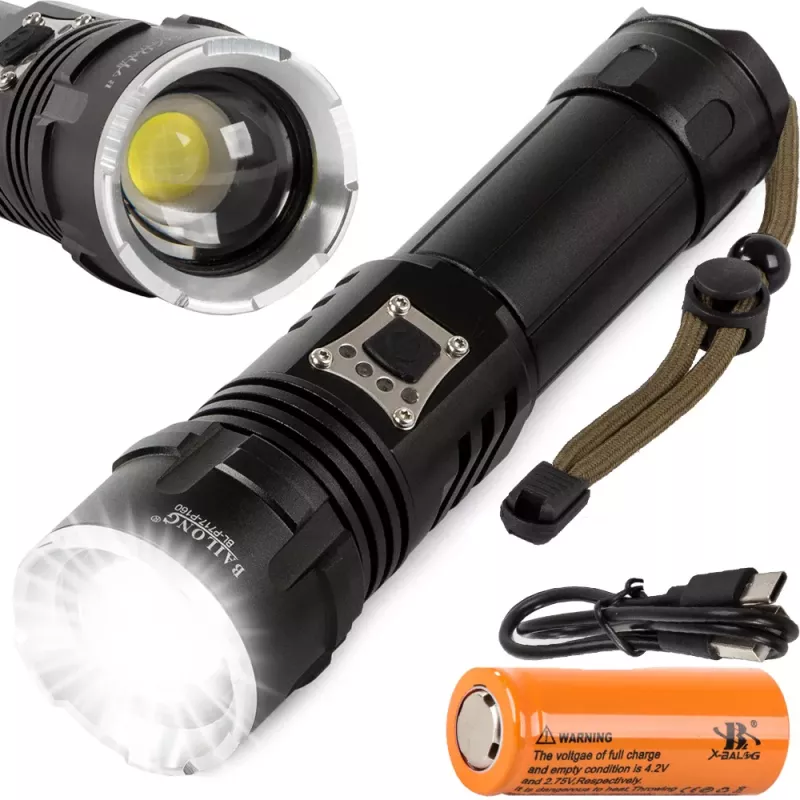 Do zasilania latarki został użyty wysokiej jakości litowo-jonowy akumulator/ogniwo 26650, który pozwala na długi czas pracy latarki.