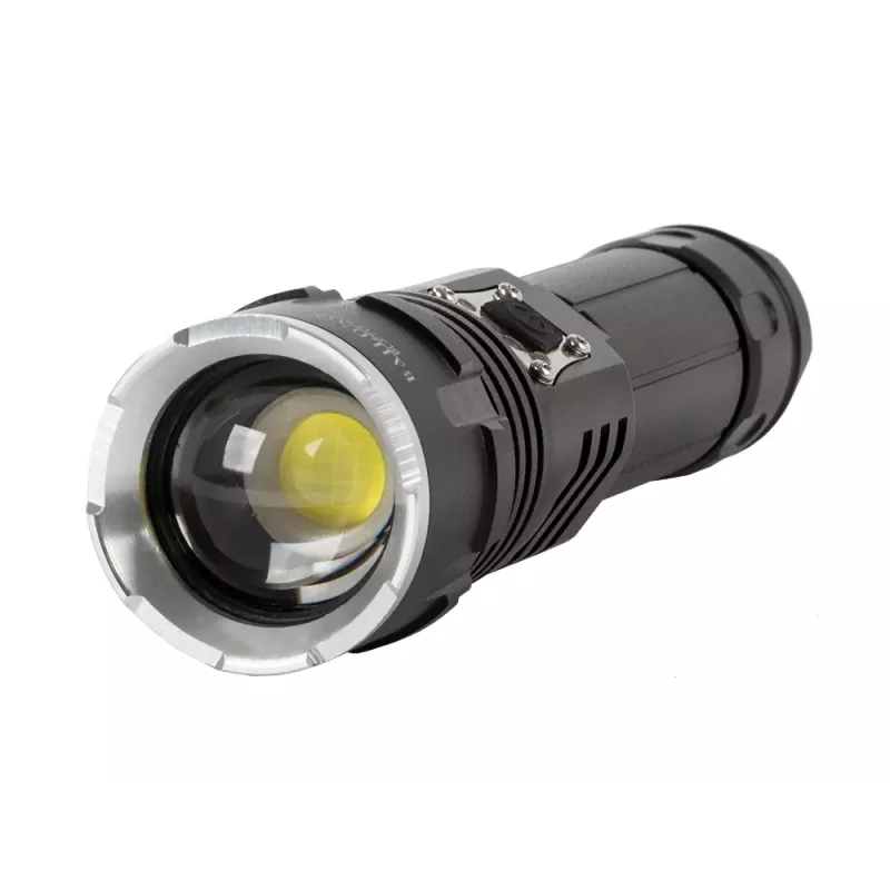 Funkcja zoom - płynna regulacja zmiany ogniskowej padania światła, dzięki wykorzystaniu soczewki skupiającej Daje to możliwość regulacji od wąskiego mocnego promienia światła o dalekim zasięgu - 1000m do szerokiego pola, który oświetla duży obszar roboczy. Te cechy sprawiają, że latarka niesamowicie sprawdza się w każdym terenie.