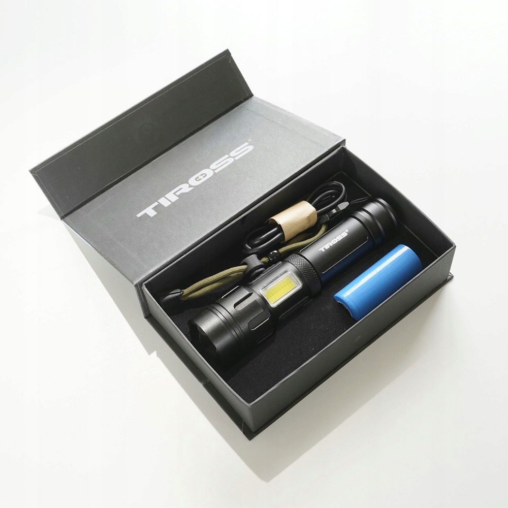 - Latarka posiada wymienny akumulator, w zestawie ogniwo 26650