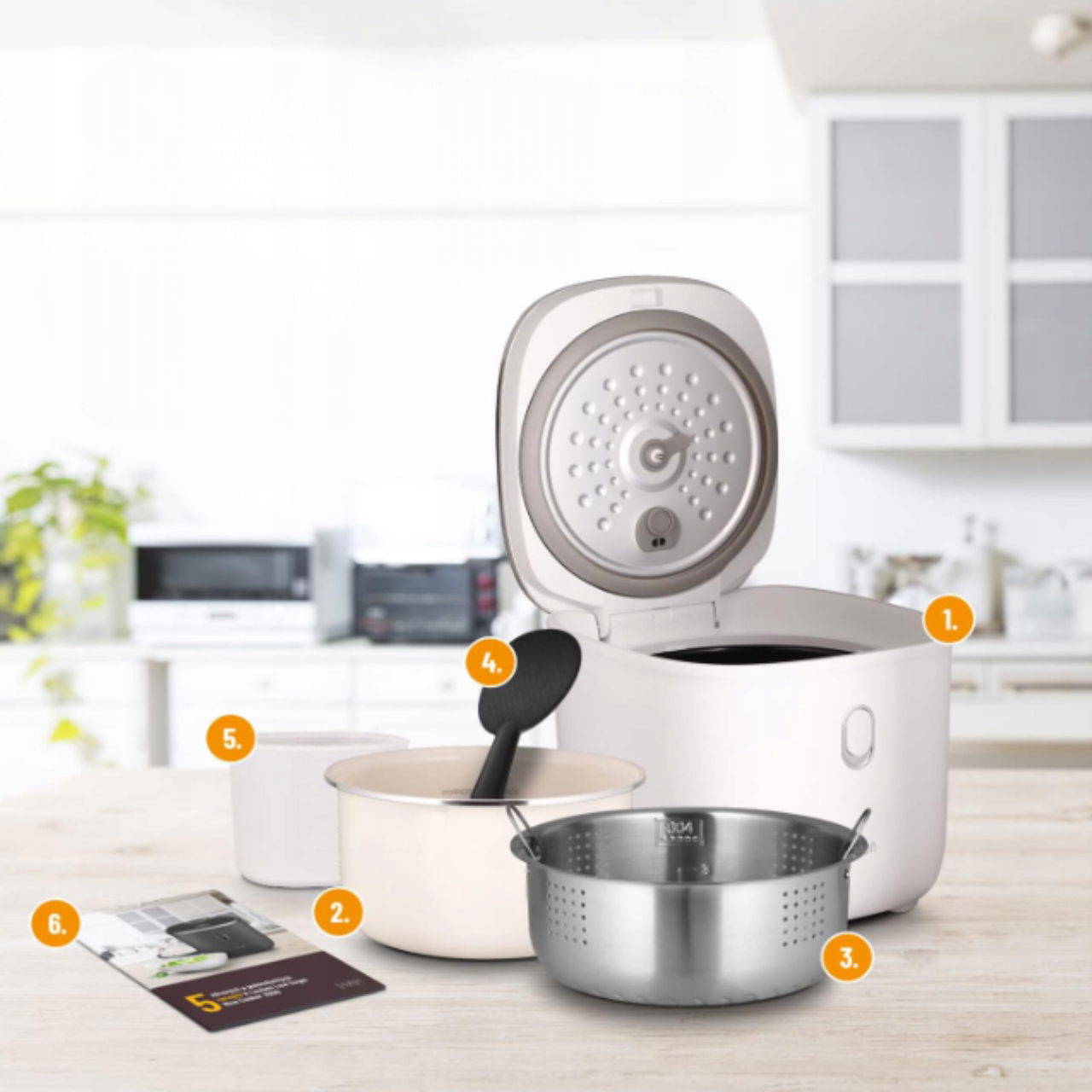 - Tryby gotowania: 6 programów (ryż, niskocukrowy ryż, zboża, zupy, warzywa, inne)