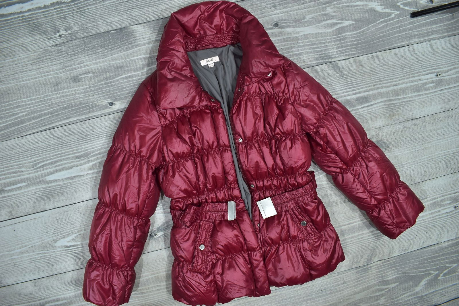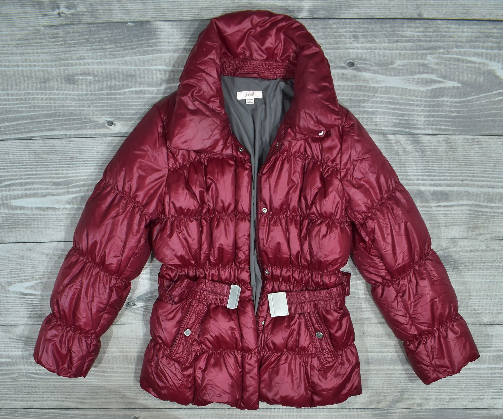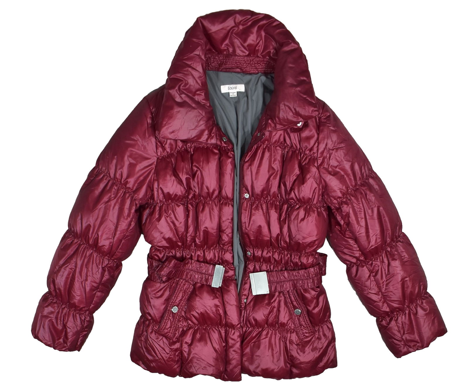 LAUREL Bordowy Krótki Puchowy Płaszcz Damski 38