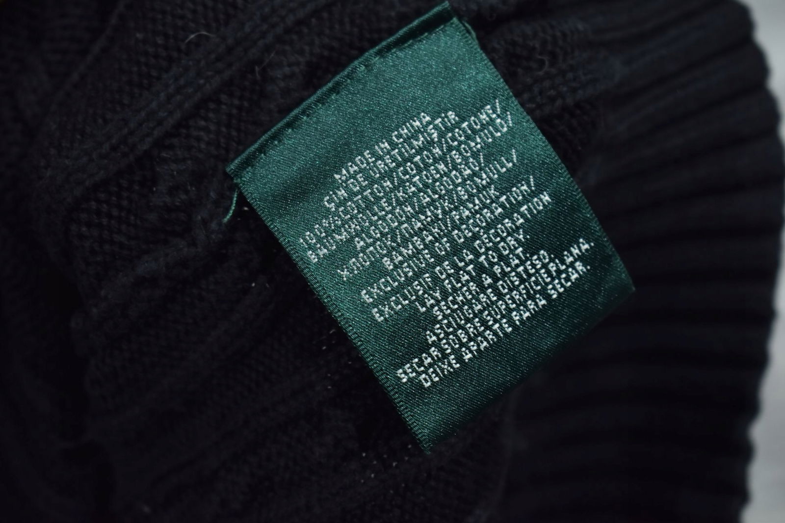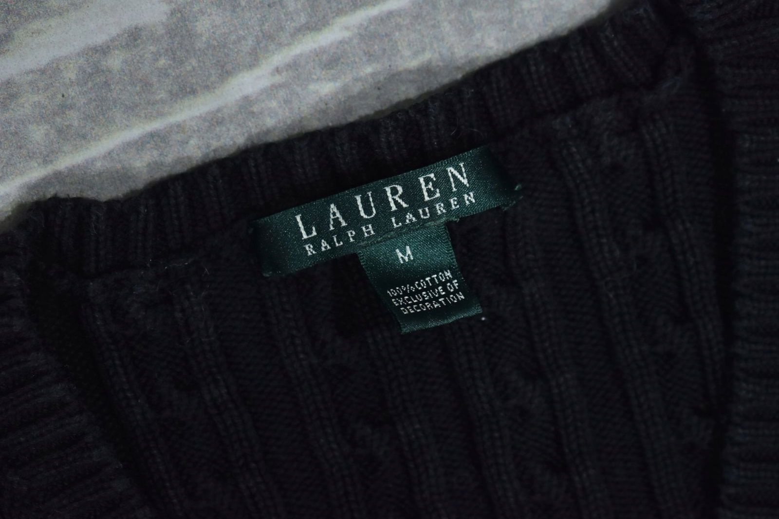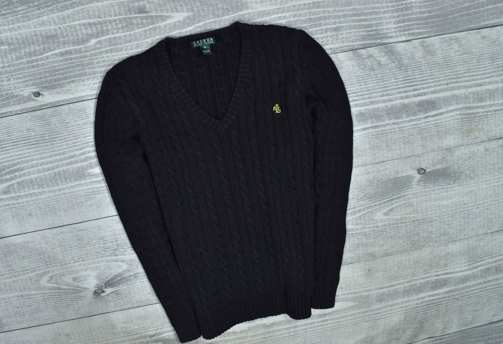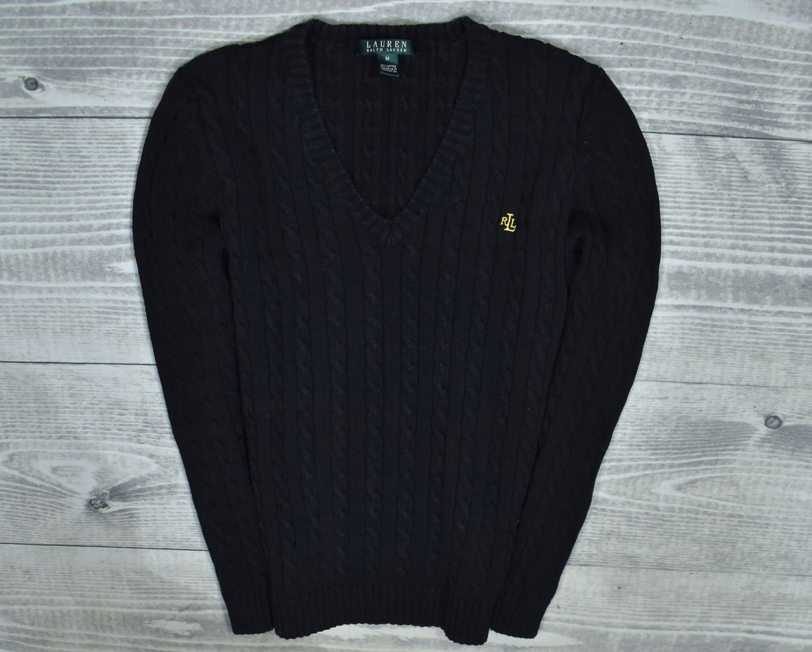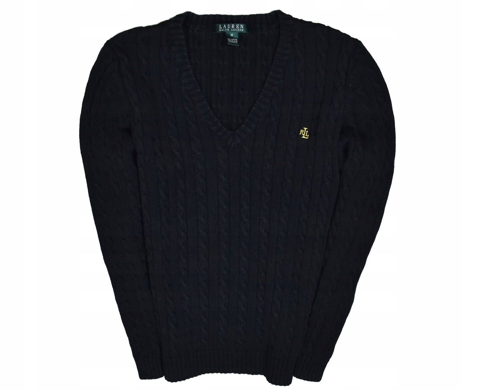 LAUREN RALPH LARUEN Czarny Bawełniany Sweter Damski Warkocz M