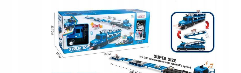 Innowacyjna zabawka, która łączy w sobie lorę transportową i tor wyścigowy w jednym, zapewniając godziny emocjonującej zabawy! W niebieskim kolorze, lora po rozłożeniu zmienia się w długi tor wyścigowy, a efekty świetlne i dźwiękowe dodają realizmu wyścigom.